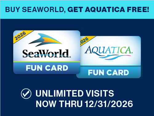 Parking, service fees, and taxes not included. 2025 Fun Card valid through December 31, 2025 at SeaWorld and Aquatica Orlando. Only valid for residents of the United States, Canada, and Puerto Rico. Fun Card does not include admission to select special events or discounts on food and merchandise. Non-transferable and non-refundable. Not valid with any other discounts or special offers. Other restrictions may apply. Subject to change without prior notice. Savings based on the cost of an individual SeaWorld Orlando and Aquatica Orlando Fun Card. Online savings are based on general admission prices available at the park. The eTicket must be purchased prior to arrival.
