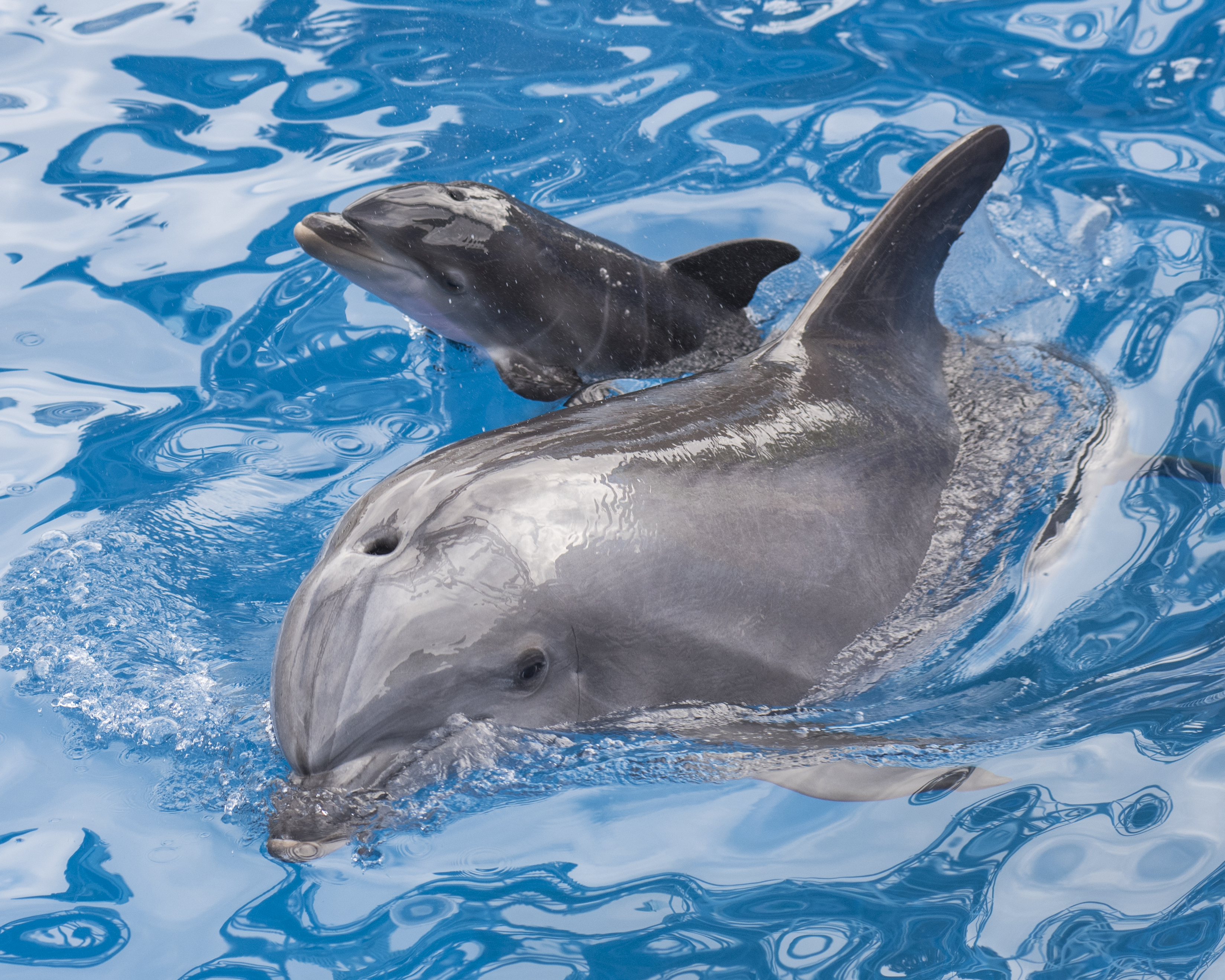 Melanie has been a nurturing mother (her first two calves, Griffith and Madison, were born in 1998 and 2000, respectively), as well as supportive of other dolphin mothers and calves at the park.